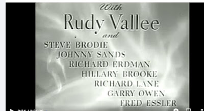 If one plugs "Rudy Vallee" into the IMDb search box -- and who hasn't? -- a deceptively long list of films appears. Most are not appearances by Vallee himself, but list use of a recording for a soundtrack or even just a composer credit. Even when we do see Rudy onscreen, more often than not it's a song performance folded into the storyline, That's why I've included only three films in this week's post on Rudy Vallee in Hollywood. I've ranked them by my personal preference.